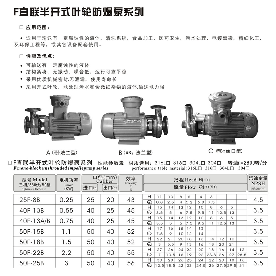 F直聯(lián)半開式葉輪防爆泵系列