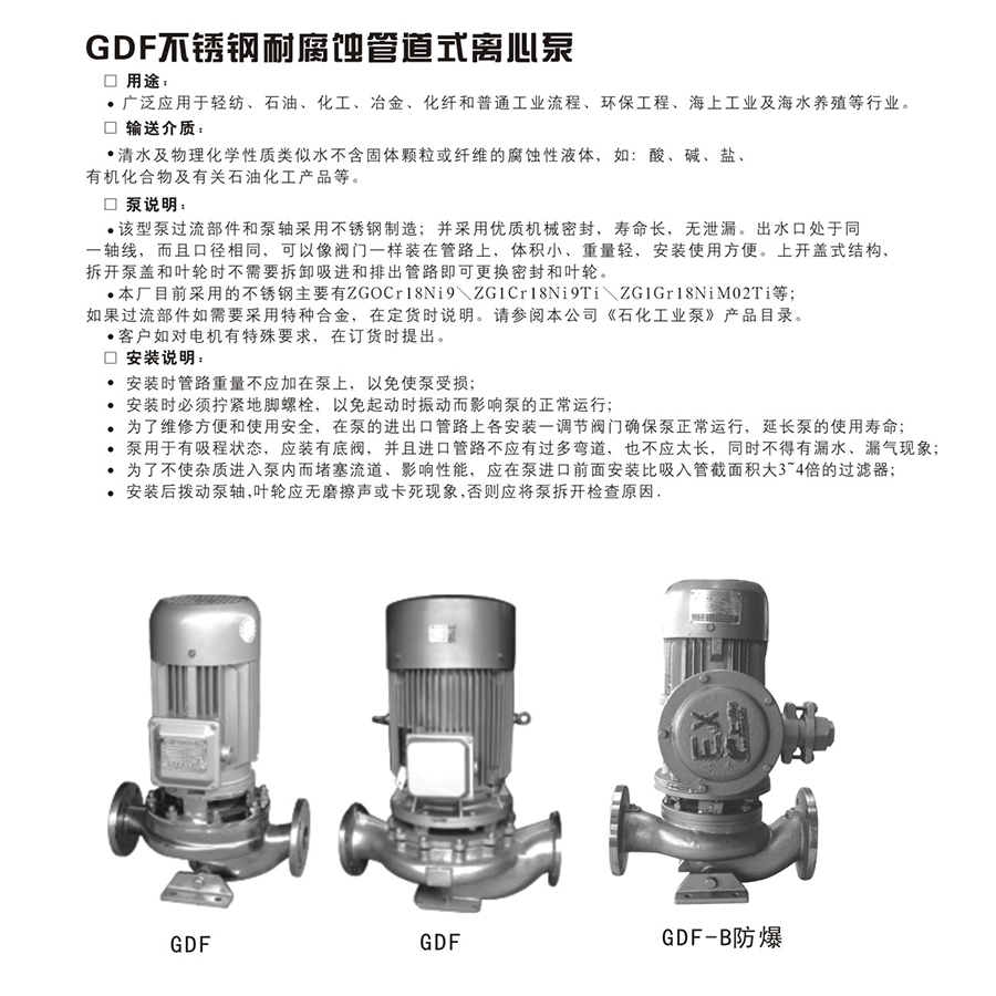 GDF立式316不銹鋼耐腐蝕管道離心泵